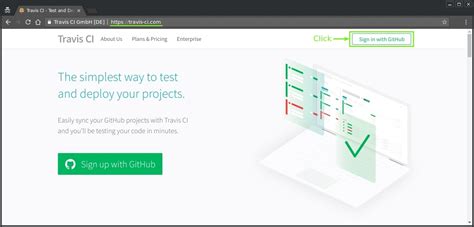 Travis CI integrates seamlessly with GitHub, so you’ll use your GitHub account to log in. On the Travis CI homepage, you should see a prominent button that says something like “Sign in with GitHub” or “Authenticate with GitHub.” Click that button.