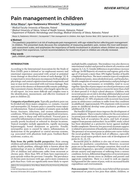 So, what kinds of pain are we even talking about when we discuss pain in child health ? It’s actually a pretty broad spectrum, guys. We’ve got the obvious stuff, like acute pain , which is sudden and usually linked to an injury or a short-term illness. Think of a scraped knee from falling off a bike, a sore throat from a cold, or even the pain from a vaccination shot. This type of pain is usually sharp, intense, and typically goes away once the injury heals or the illness passes. It’s the body’s alarm system, telling us something needs attention. Then, there’s the tougher one: chronic pain . This is pain that lasts for a long time, often for more than three to six months, or continues beyond the expected healing period. Chronic pain can stem from conditions like juvenile arthritis, sickle cell disease, or even things like frequent headaches or abdominal pain that don’t have a clear, easily treatable cause. This type of pain is incredibly challenging because it can significantly impact a child’s daily life, affecting their schooling, their friendships, and their overall mood. It’s not just a physical sensation; it can become an emotional and psychological burden too. We also need to consider procedural pain . This is the pain associated with medical procedures, like getting an IV line inserted, having stitches removed, or undergoing surgery. Even though these procedures are often necessary for their health, the pain and anxiety they cause can be really distressing for kids. Nociceptive pain is another category, which is caused by damage to body tissue. This is typically felt as a dull, aching, or throbbing pain. Think of a burn or a cut. On the other hand, neuropathic pain is a bit different; it’s caused by damage to the nerves themselves. This can feel like burning, tingling, or shooting sensations. Finally, there’s somatic pain , which comes from the skin, muscles, joints, or bones, and visceral pain , which originates from internal organs. Understanding these different types is the first step in managing pain in child health because it helps us figure out the best way to treat it. What works for a scraped knee might not be the right approach for chronic abdominal pain, you know? It requires a tailored strategy based on the specific cause and nature of the pain.