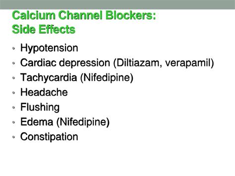 So, let’s be real, while channel blocker medicines can be incredibly beneficial, they’re not without potential side effects. Like all medications, they can cause some unwanted issues, so it’s essential to be aware of them. The side effects of channel blockers can vary depending on the specific drug and the individual. However, some common side effects include headache, dizziness, and flushing. These effects are usually mild and temporary, and they often subside as your body gets used to the medication. Some people experience swelling in the ankles and feet, known as edema. This is caused by the dilation of blood vessels and the increased fluid retention. In most cases, it’s not severe, but it should be reported to the doctor. In some cases, channel blockers can also cause constipation, particularly with verapamil. Increasing your fiber intake and staying hydrated can help. Another possible side effect is a slower heart rate, or bradycardia, which is more common with non-dihydropyridine channel blockers like diltiazem and verapamil. If your heart rate becomes too slow, you might feel dizzy or lightheaded.