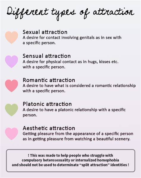 Before we get into the different types of sexual attraction , let’s quickly define what we’re talking about. Sexual attraction is that feeling of being drawn to someone in a sexual or romantic way. It’s the desire for sexual contact or a romantic relationship with a specific person. This attraction can be based on a variety of factors, including physical appearance, personality, emotional connection, and more. It’s important to remember that sexual attraction is a complex and personal experience, and it can vary greatly from person to person. One might find themselves drawn to certain characteristics, while another might prioritize other aspects. Think of it as a unique recipe where everyone has their secret ingredient. Some people might be attracted to those who display confidence and leadership, while others might prefer individuals with a more gentle and nurturing demeanor. Additionally, the context in which you meet someone can also play a role. For instance, you might find yourself attracted to a colleague because of their intelligence and work ethic, or to someone you meet at a party because of their sense of humor and outgoing personality. Furthermore, the expression and experience of sexual attraction are also significantly shaped by cultural and societal norms. What is considered attractive in one culture may be different in another. As individuals navigate their own identity and desires, it is essential to recognize that the journey is deeply personal and influenced by an interplay of biological, psychological, and social factors. Embracing this multifaceted nature of sexual attraction allows for greater self-awareness, empathy, and acceptance of both oneself and others.