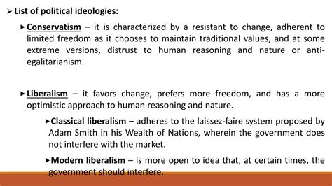 Another strand is libertarian conservatism, which combines conservative principles with a strong emphasis on individual liberty. Libertarian conservatives advocate for minimal government intervention in both the economy and people’s lives. They support free markets, individual rights, and limited government regulation. They often differ from other conservatives on social issues, such as drug legalization and same-sex marriage, advocating for individual choice and tolerance. Understanding these different ideologies—fiscal, social, national, and libertarian conservatism—is key to grasping the full spectrum of political conservatism .